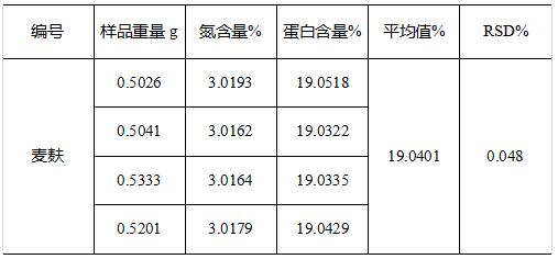 數(shù)據(jù)重復(fù)性符合國標(biāo)《GB 5009.5-2016 食品安全國家標(biāo)準(zhǔn) 食品中蛋白質(zhì)的測定》標(biāo)準(zhǔn)要求的兩個測定值的絕對差值不得超過算術(shù)平均值的10%。