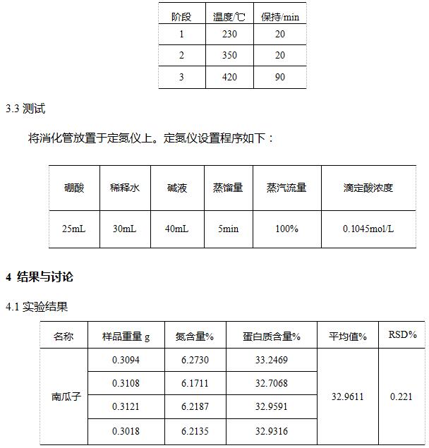 凱氏定氮儀測(cè)定南瓜子仁中粗蛋白的含量