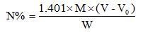 V-樣品滴定標(biāo)準(zhǔn)酸消耗量(mL),精確到小數(shù)點后四位