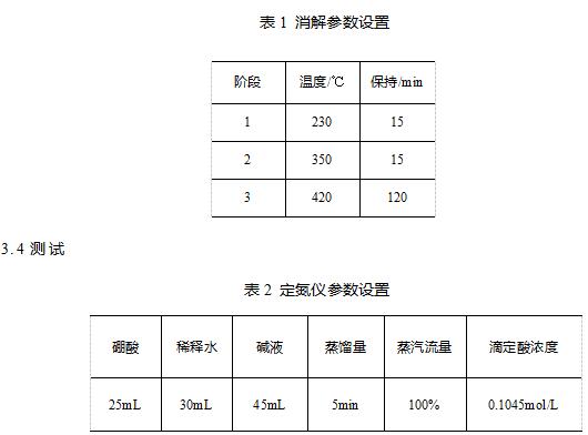 硫酸(分析純),20g/L硼酸溶液,溴甲酚綠-甲基紅混合指示劑,40%氫氧化鈉,混合催化劑片(3gK2SO4、0.2gCuSO4),0.1mol/L硫酸標(biāo)準(zhǔn)滴定液。