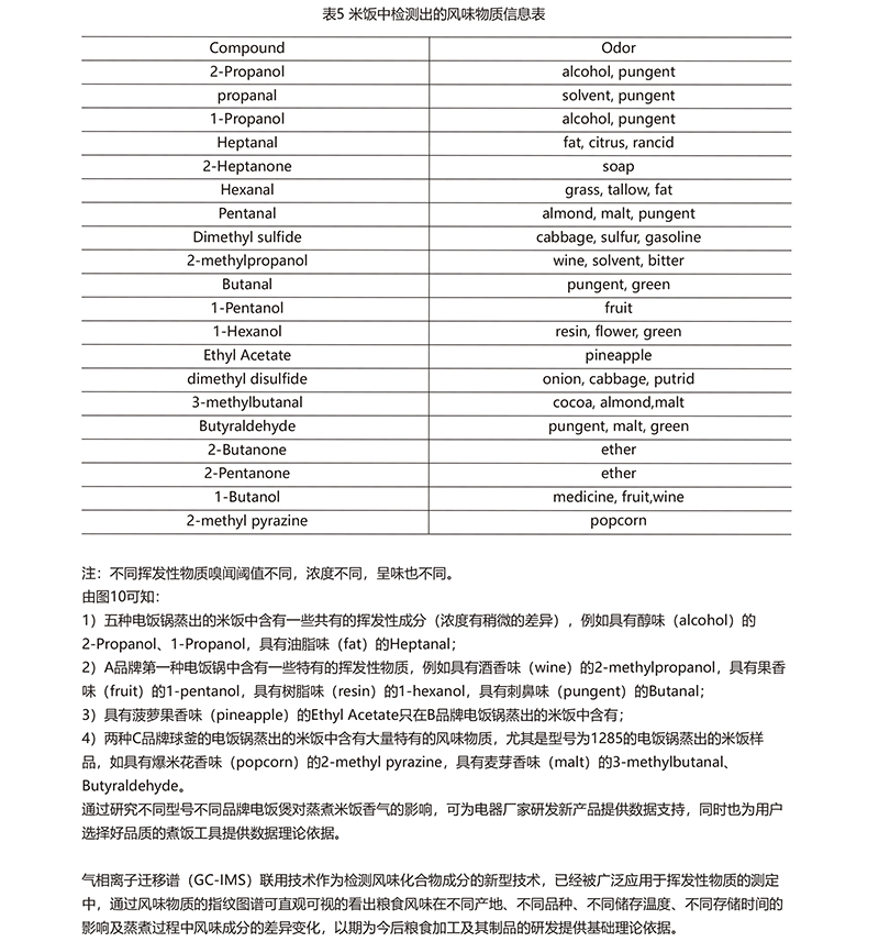 不同品牌大米蒸煮后風(fēng)味物質(zhì)檢測(cè)分析 |