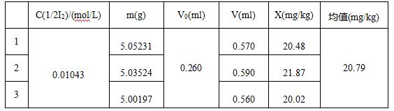 B--滴定試劑空白所用碘標(biāo)準(zhǔn)滴定溶液(0.01mol/L)的體積,單位為毫升(mL)
