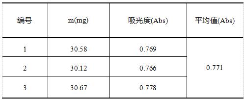 精密量取5mL提取液,置50mL容量瓶內(nèi),加甲醇至刻度,搖勻。采用i5紫外可見分光光度計(jì)在波長為432nm處,測定其吸光度。
