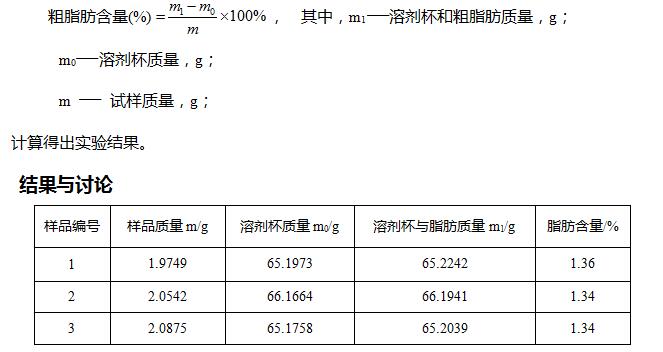 增重法計(jì)算粗脂肪含量:
