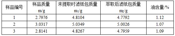 2.稱取樣品稱量樣品約3g(精確至0.0001g,記錄為m),用濾紙將其包好,放入以100℃烘箱內(nèi)烘干1h,冷卻至室溫,精確稱量濾紙包重量,并記錄為m1。