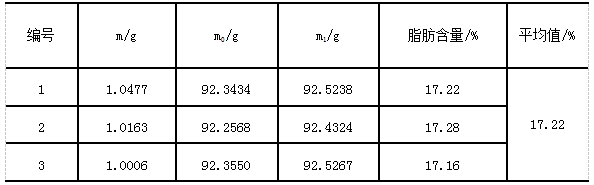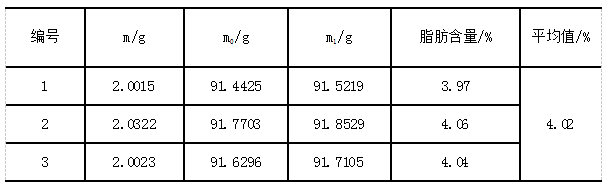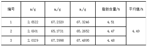 《GB 5009.6-2016食品安全國家標(biāo)準(zhǔn) 食品中脂肪的測定》中對于精密度規(guī)定:在重復(fù)性條件下獲得的兩次獨(dú)立測定結(jié)果的絕對差值不得超過算術(shù)平均值的10%。實(shí)驗(yàn)各樣品三次獨(dú)立測定結(jié)果絕對差值均未超過算術(shù)平均值的10%,符合標(biāo)準(zhǔn)要求。