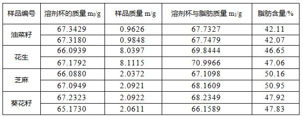 油料作物是以榨取油脂為主要用途的一類作物。常見的油料作物有花生、大豆、芝麻、油菜、向日葵等。其中脂肪測定原理為:將粉碎、分散且干燥的試樣用有機溶劑回流提取,使試樣中的脂肪被溶劑抽提出來,回收溶劑后所得到的殘留物,即粗脂肪。