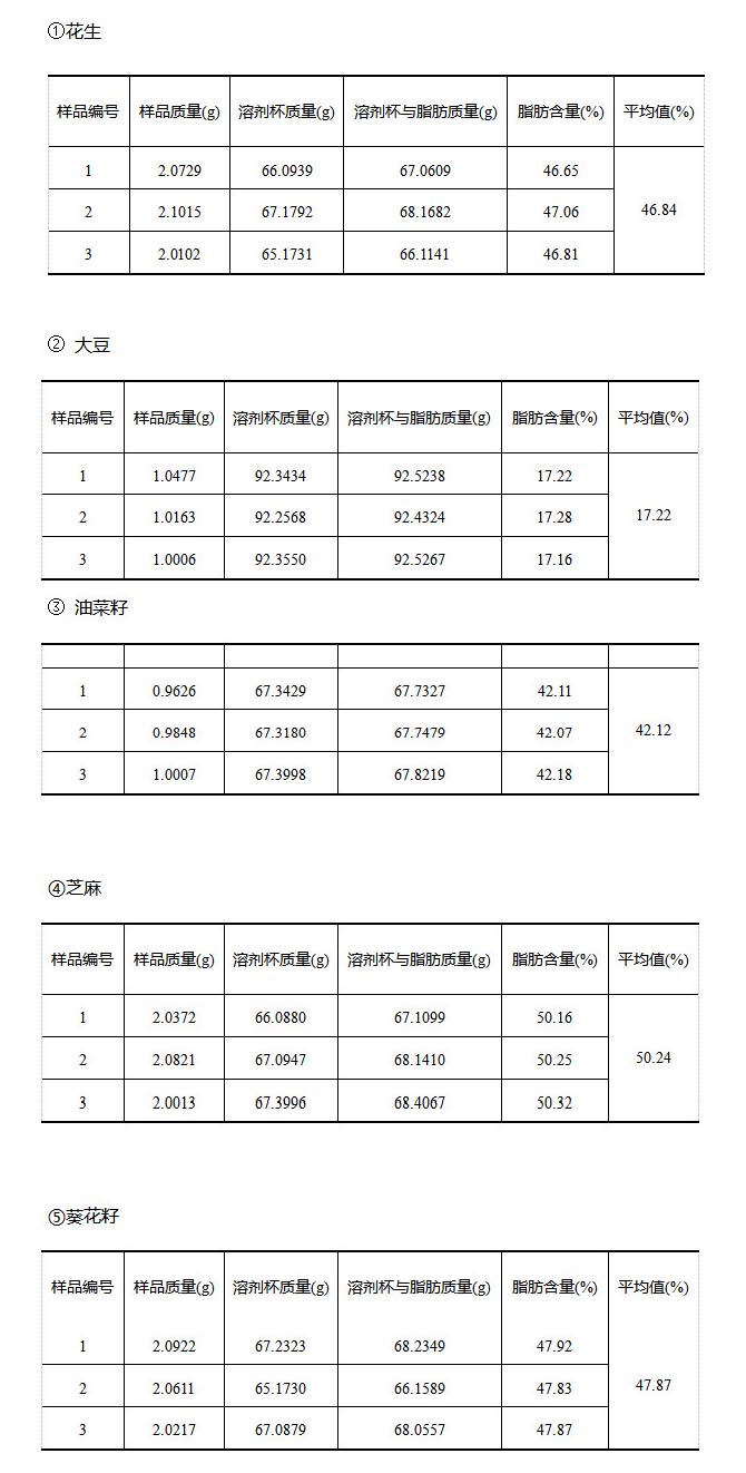 油料作物是以榨取油脂為主要用途的一類作物。常見的油料作物有花生、大豆、芝麻、油菜、向日葵等。由其榨取的植物油是人體必需脂肪酸攝入的重要來源,也是多種工業(yè)產(chǎn)品的原材料。其中脂肪含量測定原理為:將試樣用有機溶劑回流提取,使試樣中的脂肪被溶劑抽提出來,回收溶劑后所得到的殘留物,即粗脂肪。