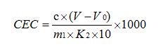 4)儀器輸出結(jié)果 儀器自動(dòng)滴定并給出陽離子交換量含量,儀器內(nèi)置計(jì)算公式如下:
