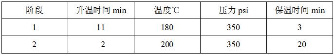 鐵礦石的消解條件:鐵礦粉取樣量為0.2g。加入10ml的硫磷混酸(硫酸:磷酸=2:8)與2mL100g/L的SnCl2.使用TANK微波消解儀進(jìn)行消解,微波消解條件如下: