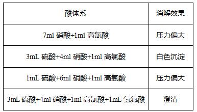 當采用1mL硫酸+5ml硝酸+1ml高氯酸+1mL氫氟酸的酸體系時,最大消解量為0.4g。