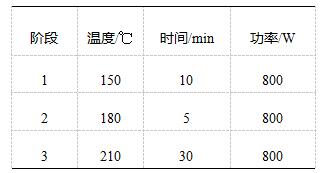 分別加入6mL濃硝酸、2mL濃鹽酸和2mL的氫氟酸,同時做試劑空白,室溫靜置一段時間,待其反應(yīng)完全后,則組裝消解罐,按照如下設(shè)置參數(shù)進(jìn)行消解: