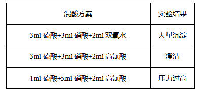 石墨消解難度較大,初次實(shí)驗(yàn)應(yīng)采用比較小的取樣量,選擇氧化性比較強(qiáng)的硝酸、硫酸、高氯酸作為試劑。