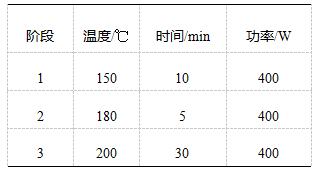 稱取石墨烯樣品0.1g(精確至0.1mg),置于消解罐中,加入6mL濃鹽酸和2mL濃硝酸,靜置一段時(shí)間后,組裝消解罐,按照如下參數(shù)進(jìn)行實(shí)驗(yàn):