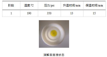 預(yù)消解結(jié)束后,將消解罐取下冷卻至室溫,補加2mL過氧化氫,靜置10min左右,觀察反應(yīng)狀況,如無明顯反應(yīng),組裝消解罐,按照以下參數(shù)微波消解: