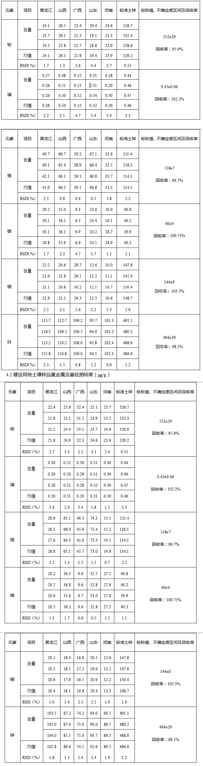 4.1 農(nóng)用地土壤樣品重金屬含量檢測(cè)結(jié)果(μg/g)