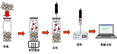 FlavourSpec通過頂空進(jìn)樣的方式可精確測定各種風(fēng)味化合物的組成,該方法可用來判斷基質(zhì)對風(fēng)味釋放的影響。