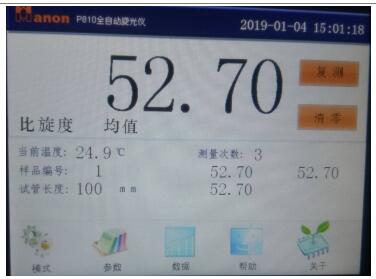 根據(jù)實(shí)驗(yàn)結(jié)果可以看出,P810旋光儀測(cè)定葡萄糖的比旋度在52.5°~53°之間,符合要求。