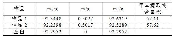 其中,m1──溶劑杯和甲苯提取物質(zhì)量,g;