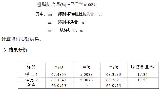 脂肪測定儀測定肉松餅中總脂肪含量