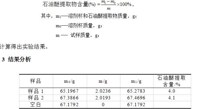 4.計算結(jié)果:抽提完成后,烘干溶劑杯至恒重,記為m1。