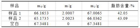 由表格中數(shù)據(jù)可知,所做的空白樣品在實(shí)驗(yàn)前與實(shí)驗(yàn)后質(zhì)量未增加,即空白中不含脂肪。