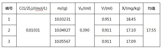 鹽漬樸葉中平均二氧化硫含量為17.55mg/kg。重復(fù)性良好,符合國標(biāo)的要求。