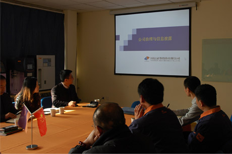 2012年1月5日下午14:00,國信證券一行人員入駐海能儀器,在公司二樓會議室對海能儀器全體股東進(jìn)行了關(guān)于股份公司的培訓(xùn)與指導(dǎo)。培訓(xùn)內(nèi)容涵蓋《公司法》《公司章程》《三會議事規(guī)則》《信息披露》等方面的知識講解,對海能儀器下一步更具規(guī)范化的操作奠定了良好的基礎(chǔ)。