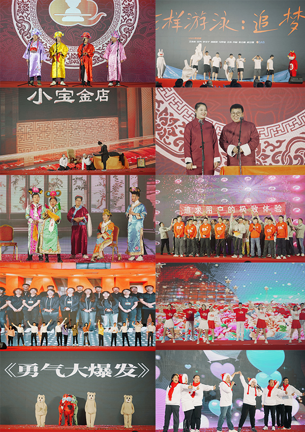 歌舞、小品、相聲……《悟空,給你極致體驗》《打劫》《花樣游泳:追夢》《Bling Bling》《征服太平洋》……各類節(jié)目接連上演,各位家人展現(xiàn)工作之外的“十八般武藝”。玩游戲、抽獎、話重逢,現(xiàn)場掌聲陣陣、歡呼聲聲,怎一個熱鬧了得。