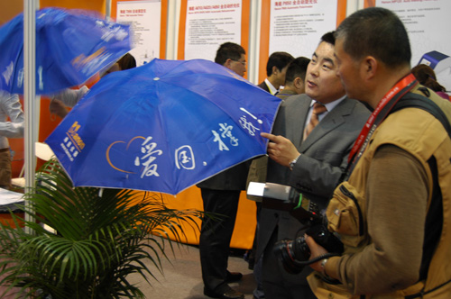 在展覽過程中,海能儀器展位前客戶絡(luò)繹不絕,前來咨詢了解海能產(chǎn)品的客戶,除了國內(nèi)一些知名高校、企業(yè)的客戶外,還包括來自澳大利亞、日本、巴西、南非等國的國外客戶,部分客戶表示出對海能儀器的采購意向。同時,海能還為本次CISILE 2011準備了上千把印有“愛國·撐我”的紀念雨傘,并將這些小禮品贈送給了那些愛國的、支持民族分析儀器產(chǎn)業(yè)的到場客戶,正是有了他們對國產(chǎn)分析儀器的支持,才使得國內(nèi)分析儀器企業(yè)在近些年有了更加顯著的高速發(fā)展。