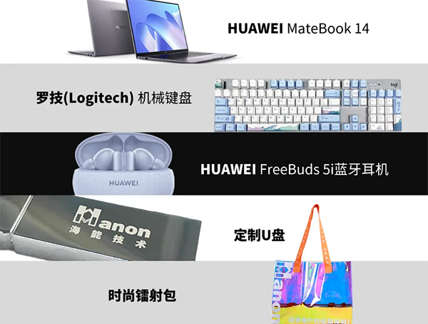 華為MATE BOOK 14、羅技機械鍵盤、華為藍牙耳機、定制U盤、時尚鐳射包……豐厚禮品,100%中獎機會,就等您來!