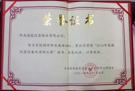 海能儀器當(dāng)選“2014高教儀器設(shè)備優(yōu)質(zhì)供應(yīng)商”