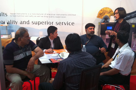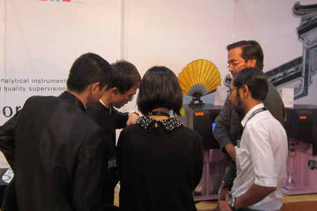 海能十分重視此次ARAB LAB展會(huì),總經(jīng)理王志剛先生親自帶隊(duì),抽調(diào)海能精英團(tuán)隊(duì),攜熔點(diǎn)儀、折光儀、旋光儀、UV紫外、凱氏定氮儀等主打產(chǎn)品前往參展。開展后,前來(lái)展位參觀的各國(guó)外商絡(luò)繹不絕,他們對(duì)海能的物光及凱氏定氮系列產(chǎn)品表現(xiàn)出了濃厚的興趣,熱情地與海能專員交談,詳細(xì)了解產(chǎn)品資料,并體驗(yàn)了海能儀器高度人性化的操作界面,參觀者對(duì)海能產(chǎn)品的設(shè)計(jì)和性能贊不絕口,給予了高度評(píng)價(jià)。