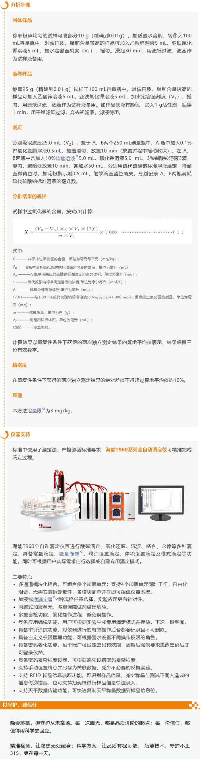 面對這一亂象,國家早已建立起嚴格的食品安全標準體系。依據(jù)GB 5009.226-2016《食品安全國家標準 食品中過氧化氫殘留量的測定》,第一法 碘量法: