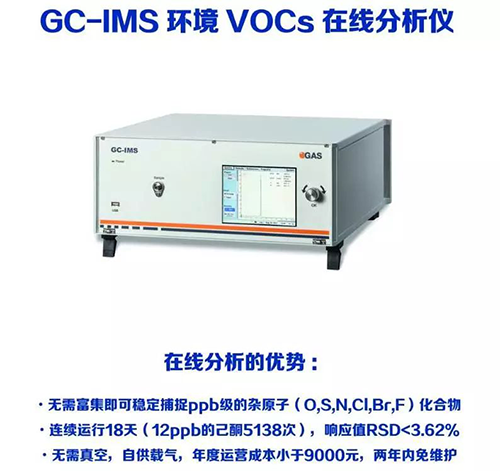 GC-IMS環(huán)境氣體分析儀,專注環(huán)境中痕量VOCs的檢測,在無需樣品預濃縮的情況下檢出限可低至ppbv級別;儀器內(nèi)置自動采樣裝置,分析前軟件可內(nèi)置待測目標物標準曲線,檢測后屏幕實時顯示目標物濃度;儀器亦可設置報警閾值,超出閾值后機器自動報警;儀器體積小、重量輕、便攜性能好、檢測速度快、可車載,在很多環(huán)境檢測領域均有重要用途。