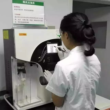 市場監(jiān)管部門對視頻中的“鑫趣”牌肉松漢堡(合肥宇順食品有限公司生產(chǎn),生產(chǎn)日期為2017年4月1日),采用K1100全自動凱氏定氮儀進行蛋白質(zhì)項目檢測,同時取醫(yī)用脫脂棉進行比對檢測。