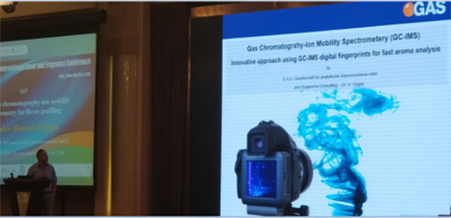 值此時(shí)機(jī),海能儀器攜旗下的GC-IMS(氣相離子遷移譜)產(chǎn)品技術(shù)參會(huì),并派出Hans Ruedi Gygax(Flavour/Fragrance Science Expert香精/香料科學(xué)專業(yè))帶領(lǐng)的工程師團(tuán)隊(duì)。會(huì)上由Hans做了專業(yè)的技術(shù)與學(xué)術(shù)報(bào)告,向大家介紹分享了GC-IMS技術(shù)及相關(guān)應(yīng)用方案。