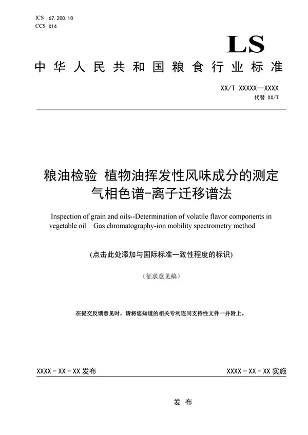 為了確保食用植物油的風(fēng)味品質(zhì)一致性和穩(wěn)定性,并科學(xué)鑒別油脂種類(lèi)、精準(zhǔn)識(shí)別油脂摻假及含量,國(guó)家糧食和物資儲(chǔ)備局公開(kāi)發(fā)布了《糧油檢驗(yàn) 植物油揮發(fā)性風(fēng)味成分的測(cè)定 氣相色譜-離子遷移譜法》的征求意見(jiàn)稿。該征求意見(jiàn)稿詳細(xì)規(guī)定了通過(guò)氣相色譜-離子遷移譜法(GC-IMS)測(cè)定植物油揮發(fā)性風(fēng)味成分的方法。歡迎老師們提出寶貴的意見(jiàn)!