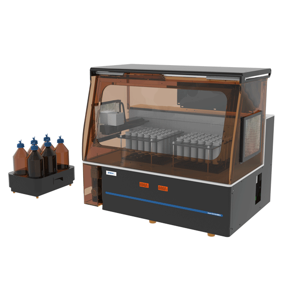 1)全自動(dòng)運(yùn)行,自動(dòng)定量加液、升降、無(wú)級(jí)變速搖勻、趕酸、定容,免去大量繁瑣、機(jī)械性工作;