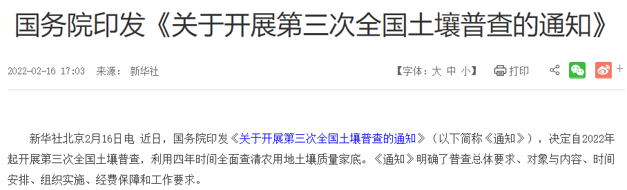 隨著經(jīng)濟(jì)社會(huì)發(fā)展,耕地占用剛性增加,要進(jìn)一步落實(shí)耕地保護(hù)責(zé)任,嚴(yán)守耕地紅線,確保國(guó)家糧食安全,需摸清耕地?cái)?shù)量狀況和質(zhì)量底數(shù)。2月16日,國(guó)務(wù)院印發(fā)了《關(guān)于開(kāi)展第三次全國(guó)土壤普查的通知》,實(shí)施耕地及相關(guān)土地的“全面體檢”。