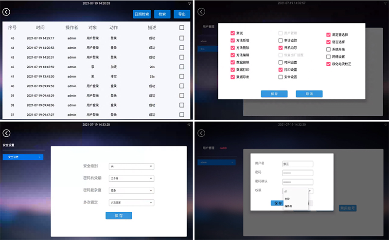 ·具備密碼安全設(shè)置,可設(shè)置密碼有效期,到期后可要求強(qiáng)制更改密碼后才可繼續(xù)使用儀器,也可設(shè)置密碼復(fù)雜程度及密碼老化時(shí)間。