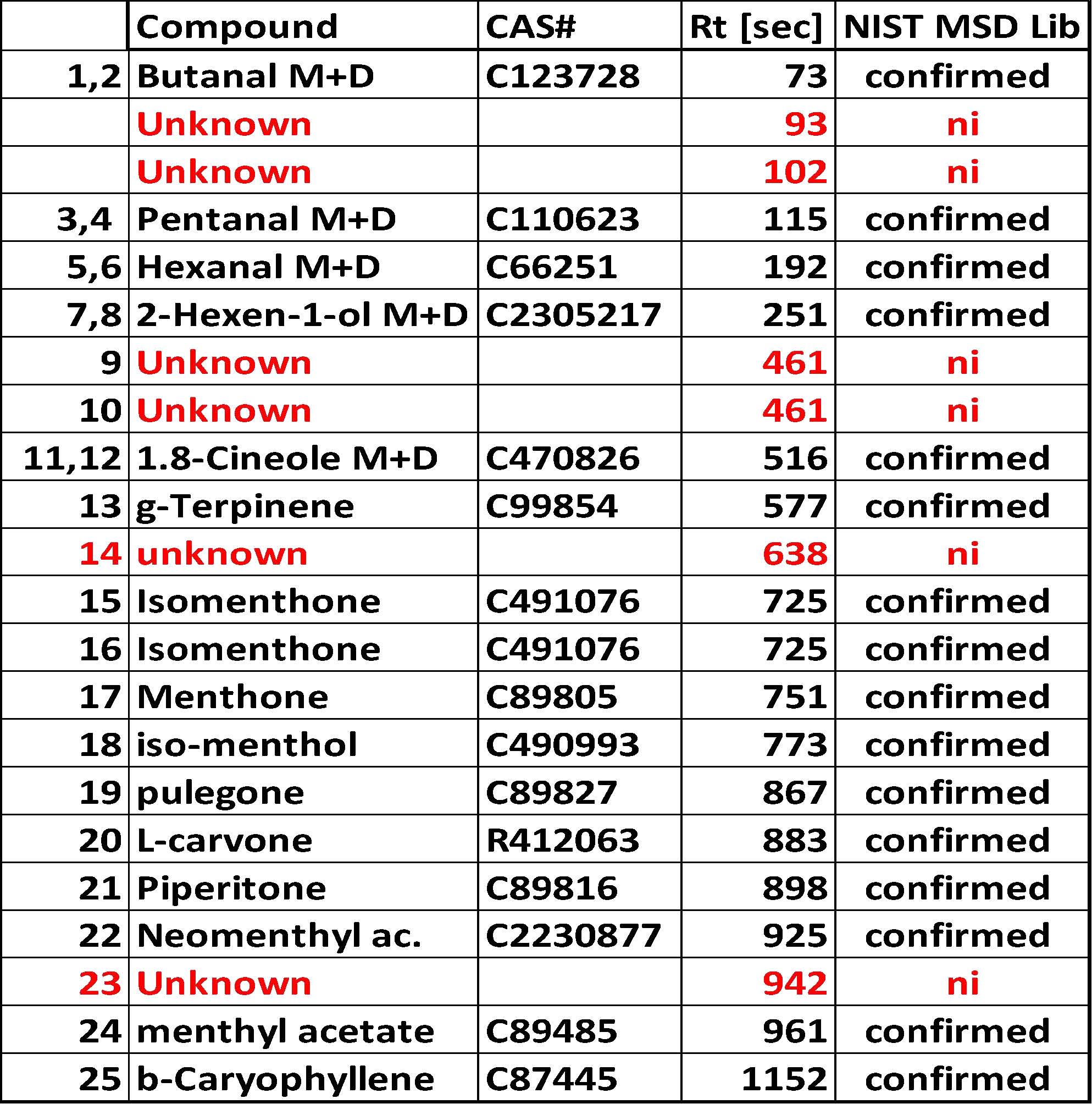 由與產(chǎn)品老化有關(guān)的有機(jī)脂肪酸氧化降解過(guò)程中形成的。此外,IMS對(duì)萜烯類(lèi)和倍半萜類(lèi)的