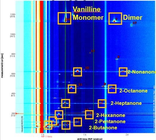 IMS 可以非常靈敏的檢測(cè)含有酯類(lèi)、醇類(lèi)、酮類(lèi)或醛類(lèi)等官能團(tuán)的風(fēng)味化合物(樣品上方頂空